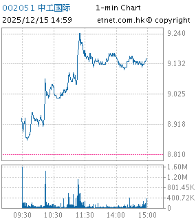 | 002051 | 中工国际 | 9.150 | +0.340 | +3.859% | 2.56亿 | 31.5517 | 深股通 | |