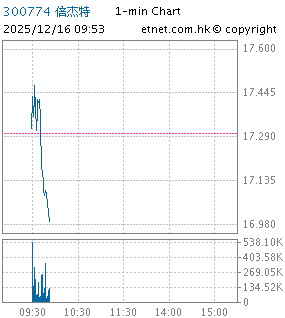 | 300774 | 倍杰特 | 17.300 | -0.840 | -4.631% | 2.38亿 | 52.4242 | 深股通 # | |